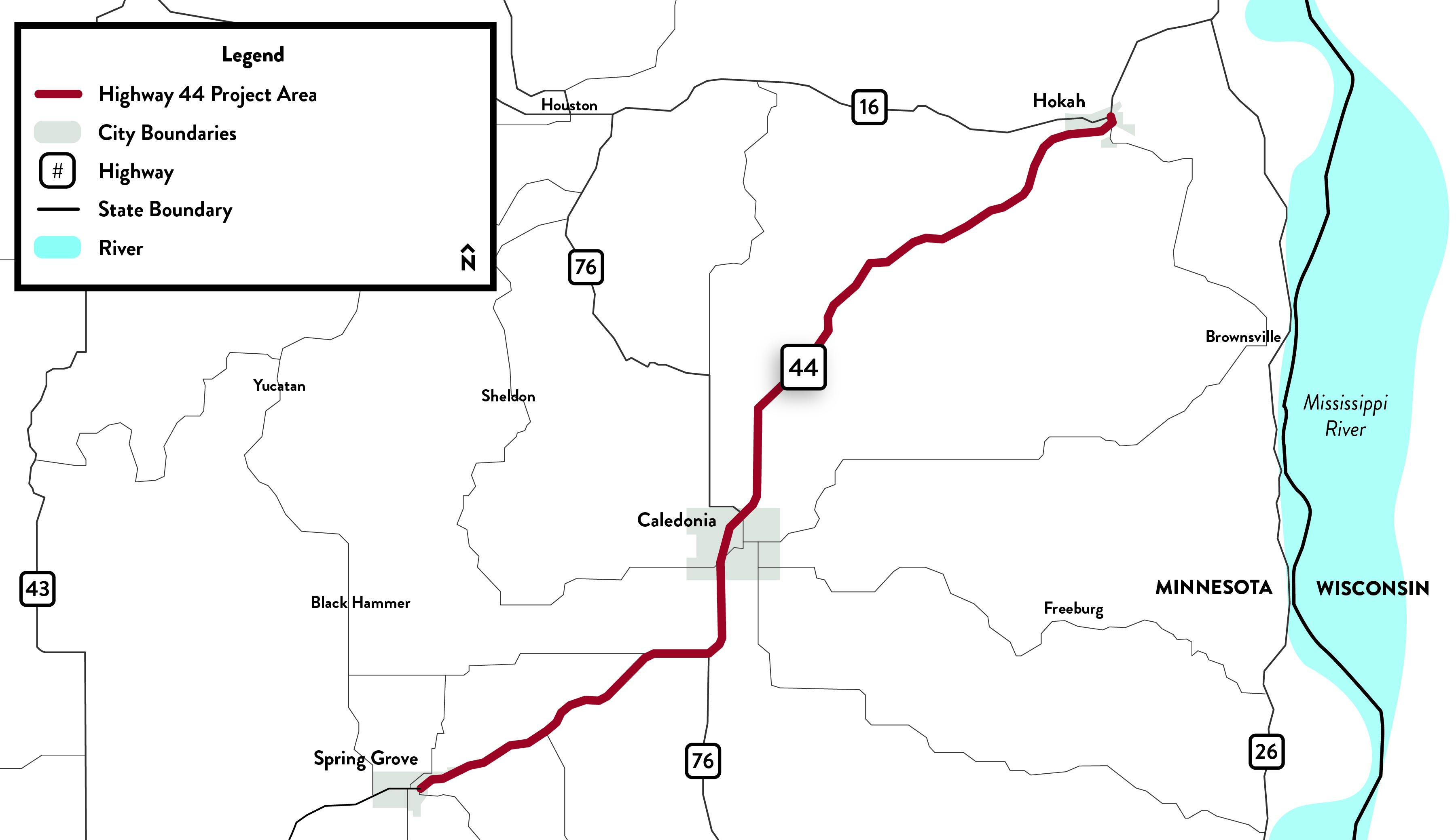 We are planning to resurface Highway 44 from Spring Grove to Hokah, a nearly 22‑mile corridor. This is the first step in a multi‑year process that will lead to future construction projects.