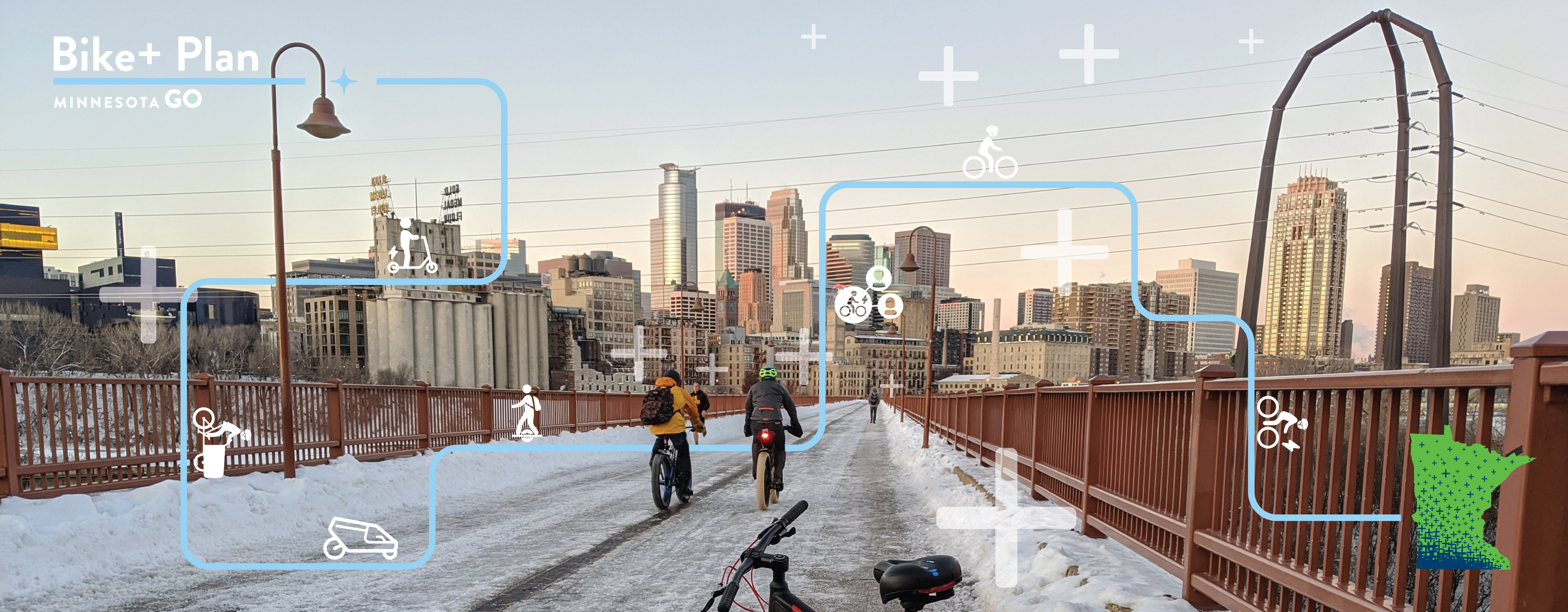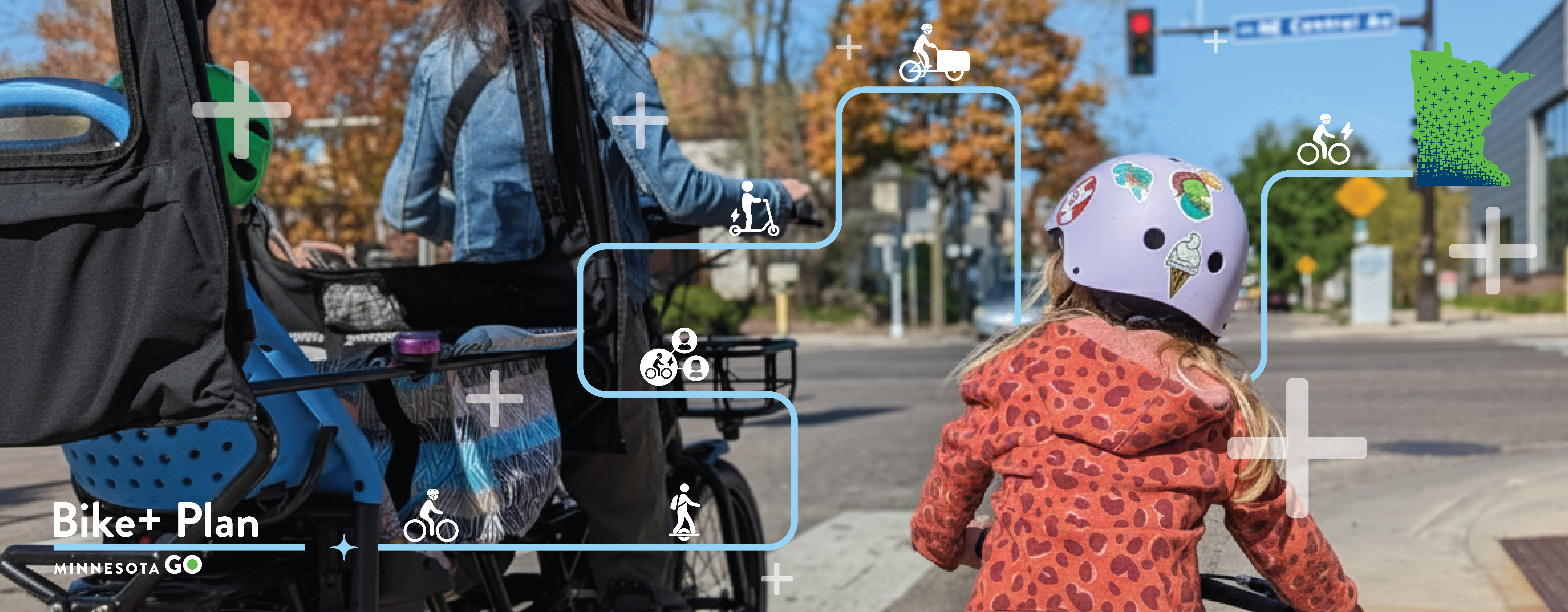 The updated Statewide Bicycle+ System Plan (Bike+ Plan) will develop vision, goals, and strategies for MnDOT’s role in supporting bicycling and bike-like modes statewide.